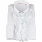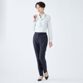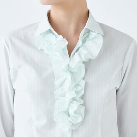 ☆フリル・・・首元から胸元にかけてギャザー分量を調整し、ボリューム感が出すぎず、ジャケットへの収まりが絶妙!