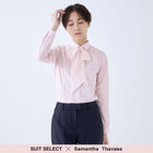 【発送在庫あり】【SUIT SELECT×Samantha Thavasa】【長袖】リボン&フリル取り外しスキッパー/ピンク×ドビーストライプ/形態安定