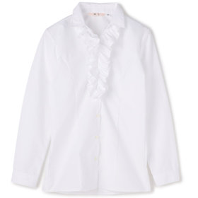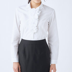 ☆フリル・・・首元から胸元にかけてギャザー分量を調整し、ボリューム感が出すぎず、ジャケットへの収まりが絶妙!