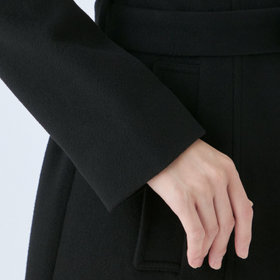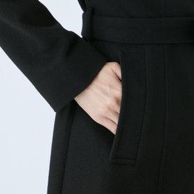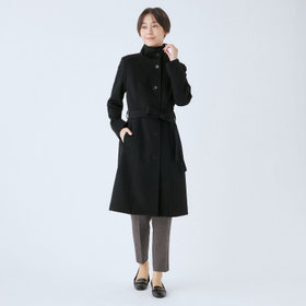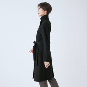 ベルトは結びのアレンジがしやすいように、芯地が薄めの仕様、スタンドカラーで体のラインを綺麗に見せるシルエットで、オン・オフ兼用で着まわし出来る実用性コートです。