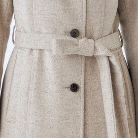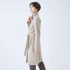 ベルトは結びのアレンジがしやすいように、芯地が薄めの仕様、スタンドカラーで体のラインを綺麗に見せるシルエットで、オン・オフ兼用で着まわし出来る実用性コートです。