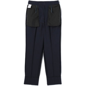 パンツは、ハイウエストデザインのセンタープレス入りテーパードパンツ。