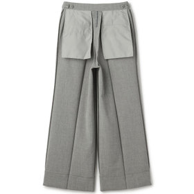 ボトムスは ワイドパンツ仕様 で、2タック+センタープレス入りの縦ラインが脚長効果を演出。