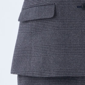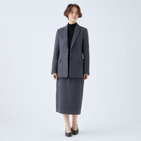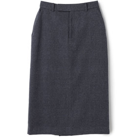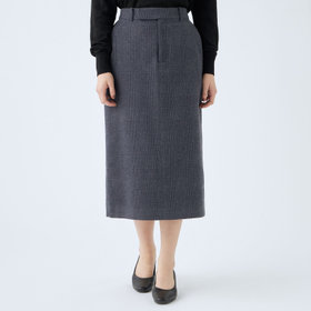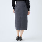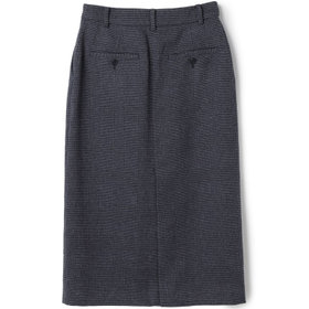 スカートはミモレ丈ストレートシルエット。パンツのフロントデザインを落とし込んだマニッシュスカートで普段パンツ派の人もトライしてみたくなるデザイン。