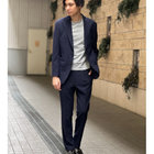 コーディネイトは、タイドアップは勿論、Tシャツ、ニットと合わせてドレスダウンした着こなしもおすすめです。