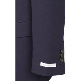 スーツの素材は、ウール混のシアサッカーで、表面に凹凸感があってシワになりにくく、肌に触れる部分が少なく冷感効果もあり夏に最適です。