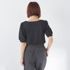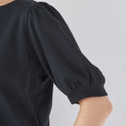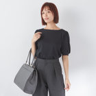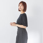 肩を華奢に見せる大きめのパフスリーブと長めにした袖丈が腕をほっそり見せます。