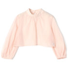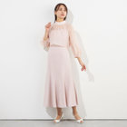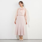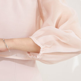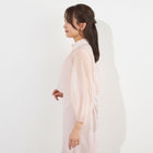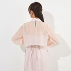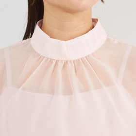 透け感のある素材と襟元のギャザーで上品な女性らしさを演出。