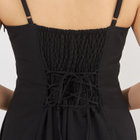 バックスタイルはシャーリング&レースアップ仕様でサイズ調整が可能。