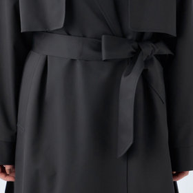 艶のある素材を使用したエレガントな雰囲気のトレンチコートです。