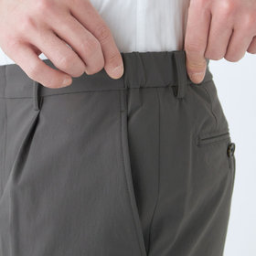 ストレッチ素材で撥水加工を施してあり、雨の日でも安心して着用できます。家庭用洗濯機でも洗濯可能で、清潔にお召しいただけます。ウエストシャーリング仕様。