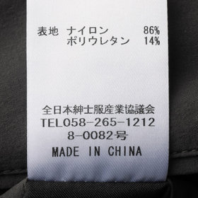 スーツやパンツのサイズ確認は、直立姿勢だけではなく、椅子に座った時の負荷。しゃがんだ時の負荷を考えたサイズ選びを必ずお願いします。ヒップ・太もも部分の生地にゆとりがない場合等の無理なサイズ選びは、体型や動きに関係なく生地や糸に負荷がかかり、「縫い目のほつれ」「生地の破れ」が起こります。また、両太もも同士が当たる場合や生地にゆとりがない場合、股ズレで生地が破れる可能性がございます。実店舗での商品確認・試着にて正しいサイズの購入をお勧めいたします。サイズが合わない事による「縫い目のほつれ」「生地の破れ」は「返品」「交換」「無償修理」はいたしかねます。また商品状態により修理が出来ない場合もございます。