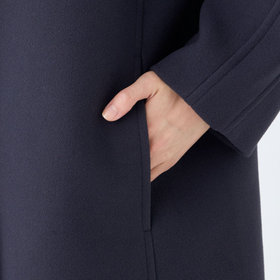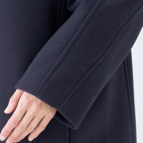スタンドカラーで体のラインを綺麗に見せるシルエットで、オン・オフ兼用で着まわし出来る実用性コートです。