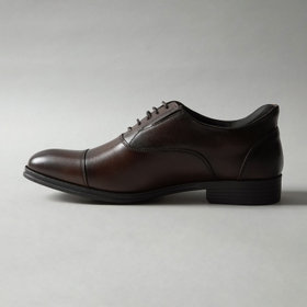 デザインは、ビジネスシーンで最も信頼感のあるストレートチップ。内羽根式の端正な表情は、就職活動や大切な商談、フォーマル寄りのビジネススタイルまで幅広く対応します。スーツスタイルはもちろん、セットアップやジャケパンとも好相性で、足元をきちんと引き締めてくれます。